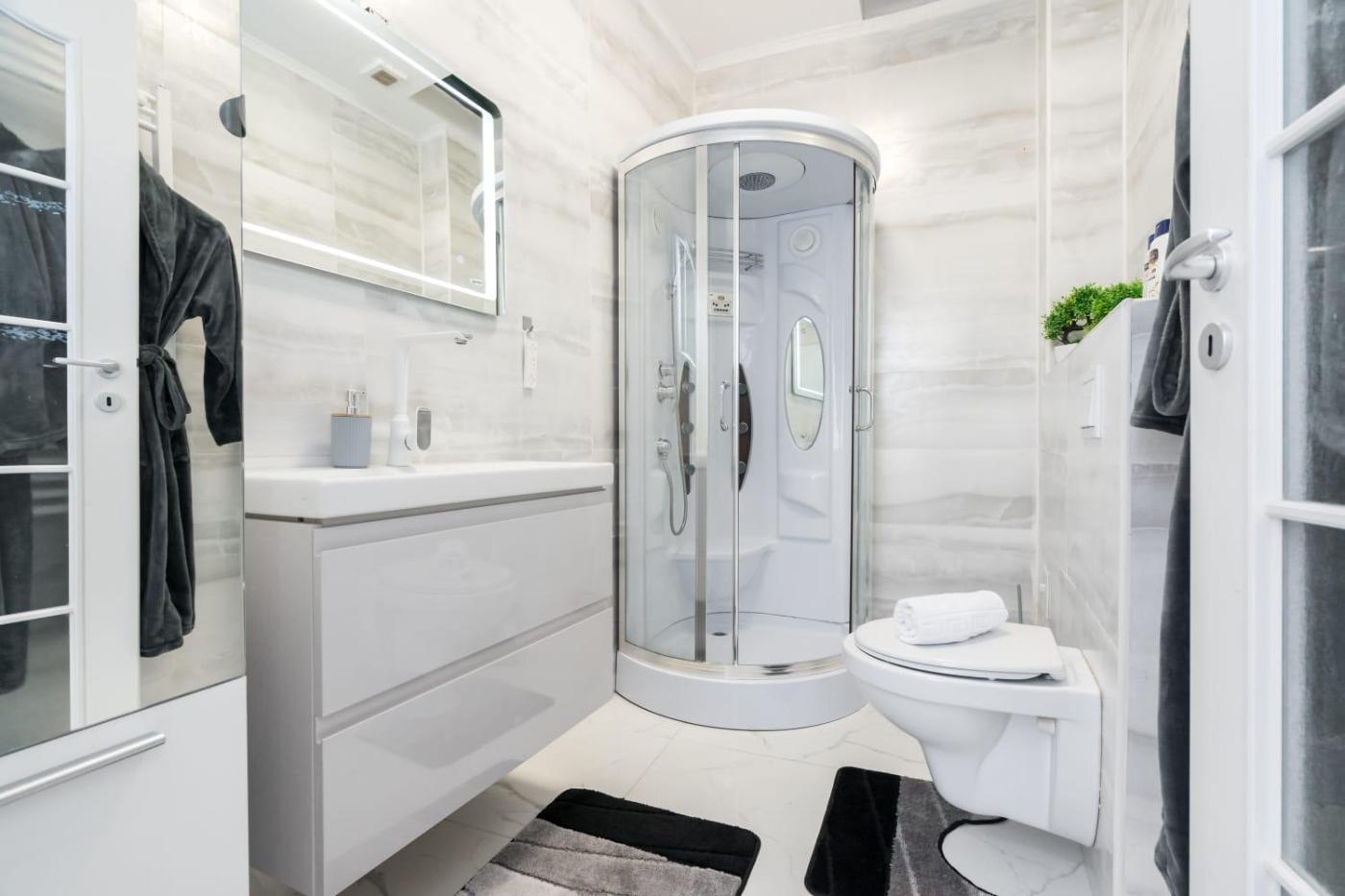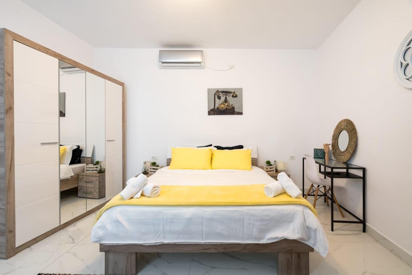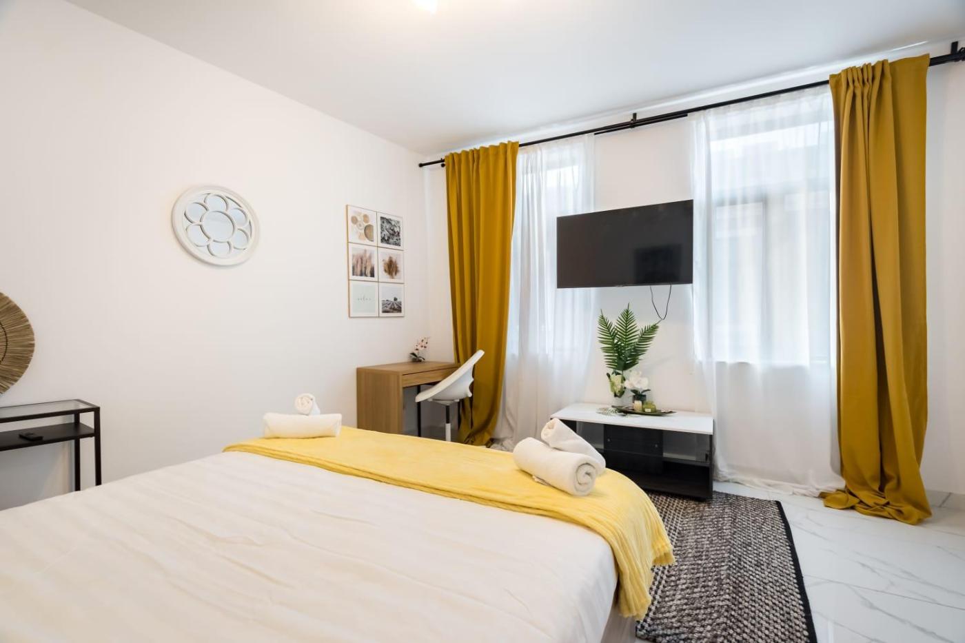 The air-conditioned apartment consists of 1 bedroom, a living room, a fully equipped kitchen with an oven and a coffee machine, and 1 bathroom with a shower and bathrobes. Towels and bed linen are available in the apartment. Additional in-room amenities include wine or champagne.