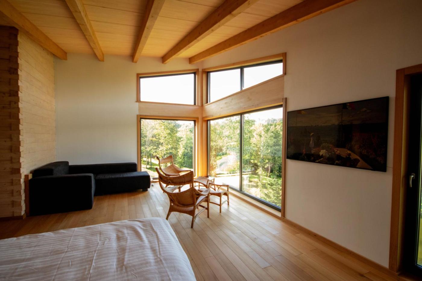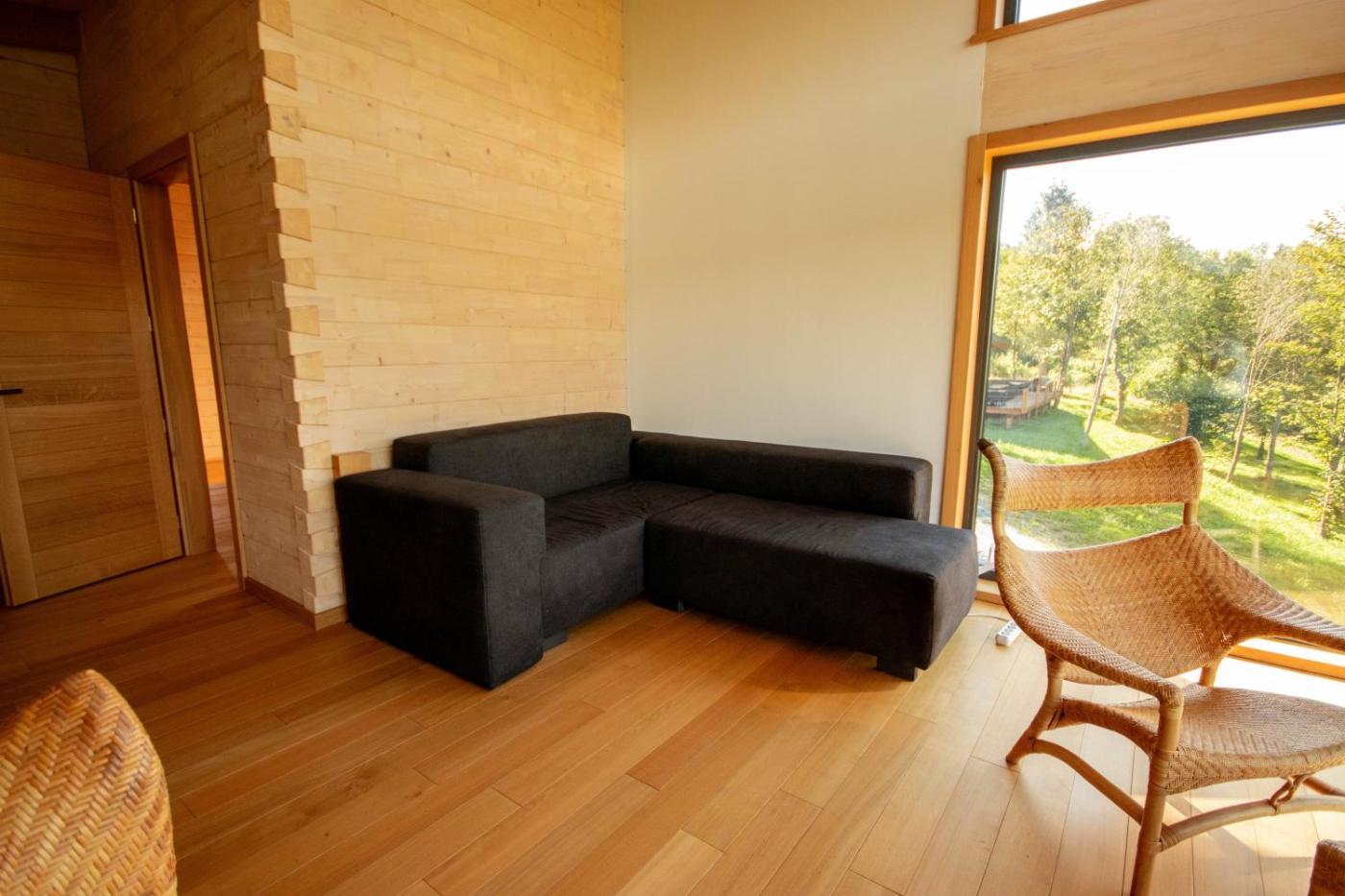 Chalet. This spacious chalet features 1 living room, 2 separate bedrooms and 2 bathrooms with a walk-in shower and a bath or a shower. Guests will find kitchenware in the kitchen. The chalet also comes with a barbecue. Boasting a balcony with garden views, this chalet also features a washing machine and a flat-screen TV. The unit has 4 beds.