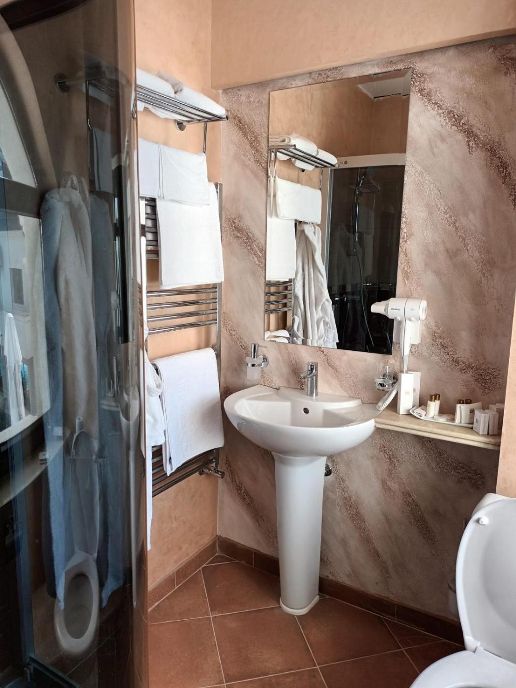 Single Room. Featuring free toiletries and bathrobes, this single room includes a private bathroom with a shower, a hairdryer and slippers. This single room has air conditioning, a tea and coffee maker, a flat-screen TV and a terrace. The unit has 1 bed. ;