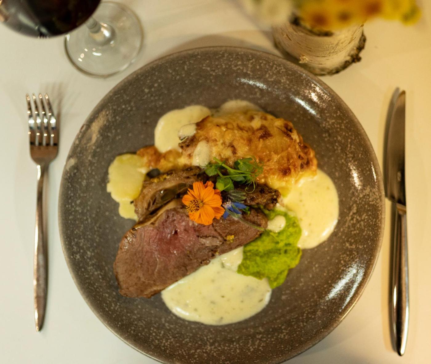 At the guest house, the family-friendly restaurant is open for dinner and lunch and serves European cuisine.