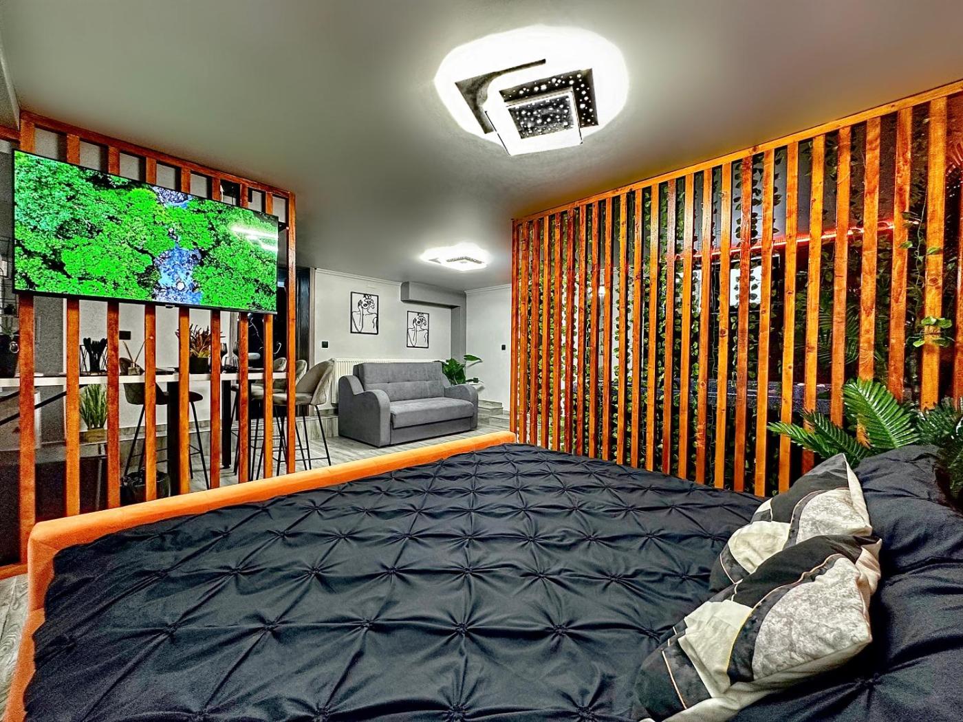 One-Bedroom Apartment with Jacuzzi. This apartment features a hot tub. Boasting a private entrance, this air-conditioned apartment features 1 living room, 1 separate bedroom and 1 bathroom with a bath and a shower. The apartments kitchen, which has a stovetop and a refrigerator, is available for cooking and storing food. The apartment features a flat-screen TV with streaming services, soundproof walls, a minibar, a tea and coffee maker as well as garden views. The unit has 2 beds. ;