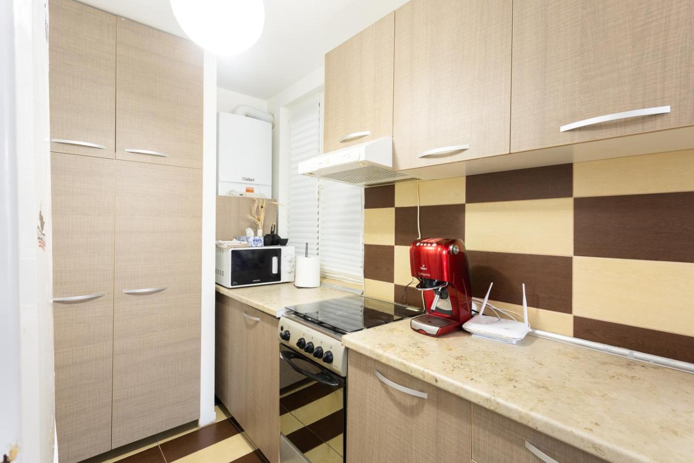 One-Bedroom Apartment. This apartment features 1 living room, 1 separate bedroom and 1 bathroom with a walk-in shower and free toiletries. In the kitchen, guests will find a stovetop, a refrigerator, kitchenware and an oven. The air-conditioned apartment features a flat-screen TV with streaming services, a washing machine, soundproof walls, a tea and coffee maker as well as city views. The unit has 2 beds.
