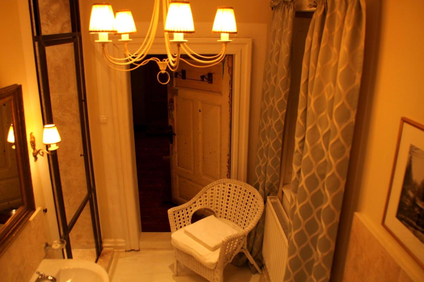 The Yellow Room. Overlooking the garden pond, this double room is located on the 1st floor. It features a spacious en-suite bathroom with a freestanding bathtub and a double walk-in shower. The fireplace creates a cozy atmosphere both in winter and summer. Overlooking the garden pond, this double room is located on the 1st floor of the Machine House ;